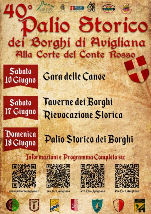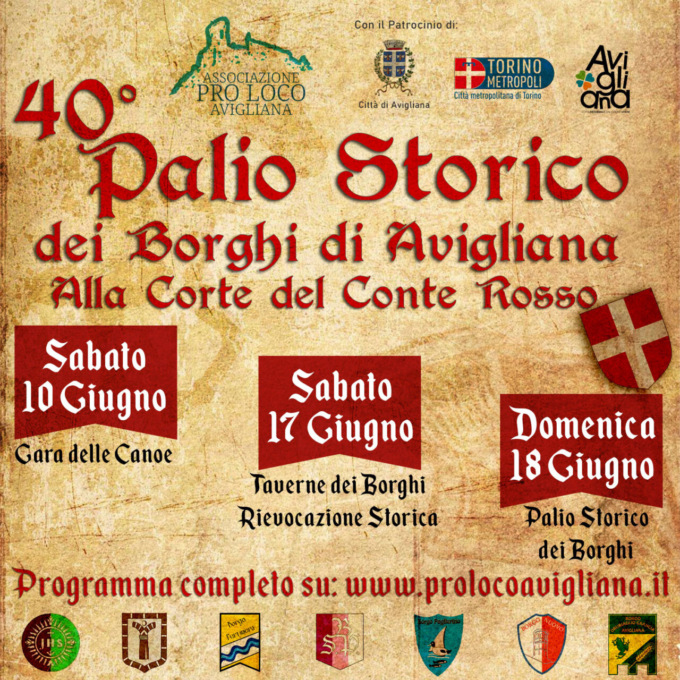 A seguire la Messa nella chiesa di San Giovanni alle 10, con la benedizione delle bandiere dei borghi e del Palio. Alle 15 in piazza del Popolo partirà il corteo storico, con il Conte Rosso, la corte e gli oltre 500 figuranti dei borghi. Dopo aver sfilato in corso Laghi, il corteo raggiungerà il Campo del Palio. In attesa della corsa dei cavalli montati a pelo a giro unico si svolgeranno una gara di tiro con l’arco e lo spettacolo del gruppo Sbandieratori e Musici della Città di Avigliana e del gruppo storico “I Cavalieri del Conte Verde”. Dopo la premiazione del borgo vincitore la festa proseguirà con la cena del Palio alle 20,30, con prenotazione telefonica al numero 366-8939852. Alle 22,30 partirà la fiaccolata del corteo storico, seguita da uno spettacolo pirotecnico.