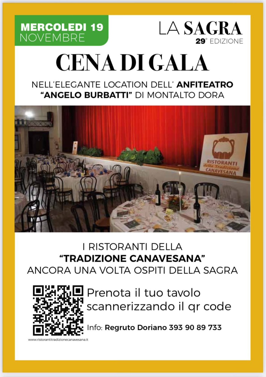 La sagra prenderà il via mercoledì 19 novembre con la cena di gala nell’anfiteatro Angelo Burbatti, proposta dai Ristoranti della Tradizione Canavesana.