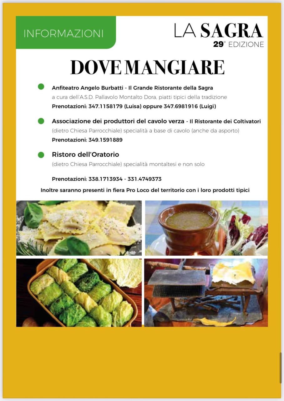 La Sagra del Cavolo Verza è nata nel 1996 per rilanciare un prodotto che per tantissimi anni è stato il fulcro dell’economia del paese, ma che era quasi scomparso dalle campagne. Un tempo i cavoli invernali di Montalto Dora erano conosciuti in tutto il Canavese per qualità e sapore: erano l’ingrediente indispensabile per confezionare la migliore zuppa ‘d pan e còj, grazie alle loro foglie croccanti e frastagliate; ma anche per raccogliere dai fumanti fojòt (i tegamini di coccio) la deliziosa bagna caôda. Senza dimenticare la loro funzione di involucro per l’impasto dei caponèt canavesani.