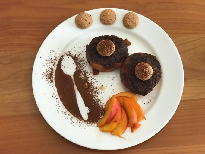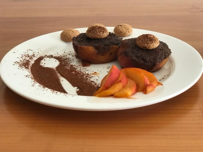 Nello stand gastronomico della Sagra della Pesca Ripiena sono servite esclusivamente specialità piemontesi, frutto di uno studio delle ricette canavesane tradizionali, perché uno degli obiettivi della Sagra è la riscoperta degli antichi sapori dell’agricoltura, della zootecnia e della cucina locale. Oltre alle pesche ripiene, spazio dunque alle acciughe e ai tomini freschi al verde, ai Peperoni di Carmagnola cotti al forno e conditi con olio e timo, al Salame di Turgia, agli agnolotti piemontesi, ai fagioli con le cotiche cucinati nelle tofeje di Castellamonte, alle carni alla brace, alla salsiccia artigianale e alla Toma di Lanzo. Anche la scelta dei vini è rigorosamente piemontese: Barbera, Bonarda, Arneis.