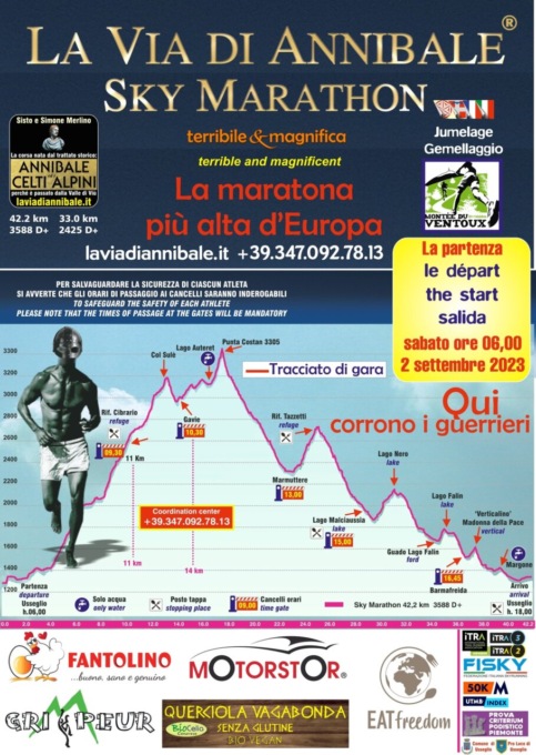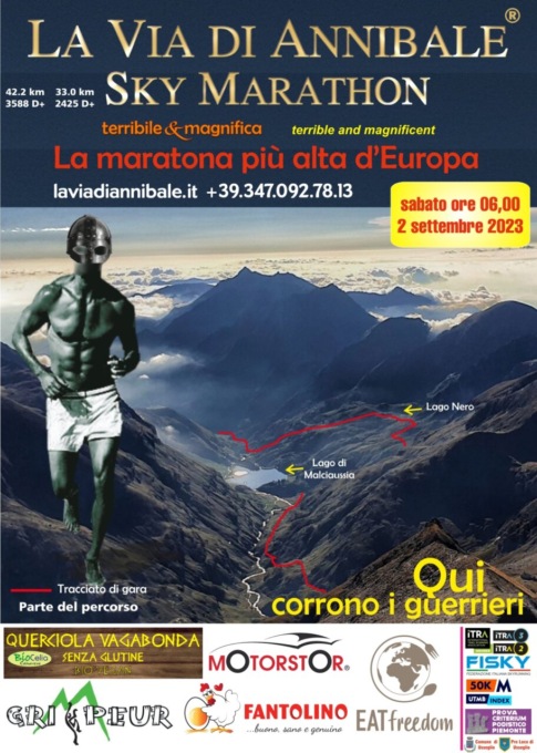 Nel primo fine settimana di settembre, sabato 2, ad Usseglio è anche in programma la Via di Annibale Sky Marathon, che ripercorre uno degli itinerari che il condottiero cartaginese avrebbe seguito per valicare le Alpi. Si correrà come sempre in un ambiente naturalmente integro, in cui l’altitudine, il sole, il vento e la neve sono i dominatori e padroni. La corsa parte ed arriva ad Usseglio, toccando due passi ad oltre 3000 metri di quota e il nevaio dell’ex ghiacciaio Bertà.