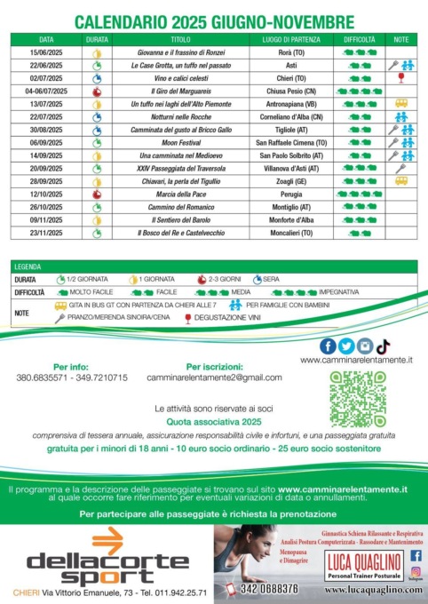 Per informazioni e iscrizioni, entro il 1° luglio, i numeri telefonici da chiamare sono il 349-7210715 o il 380-6835571, oppure si può scrivere a camminarelentamente2@gmail.com